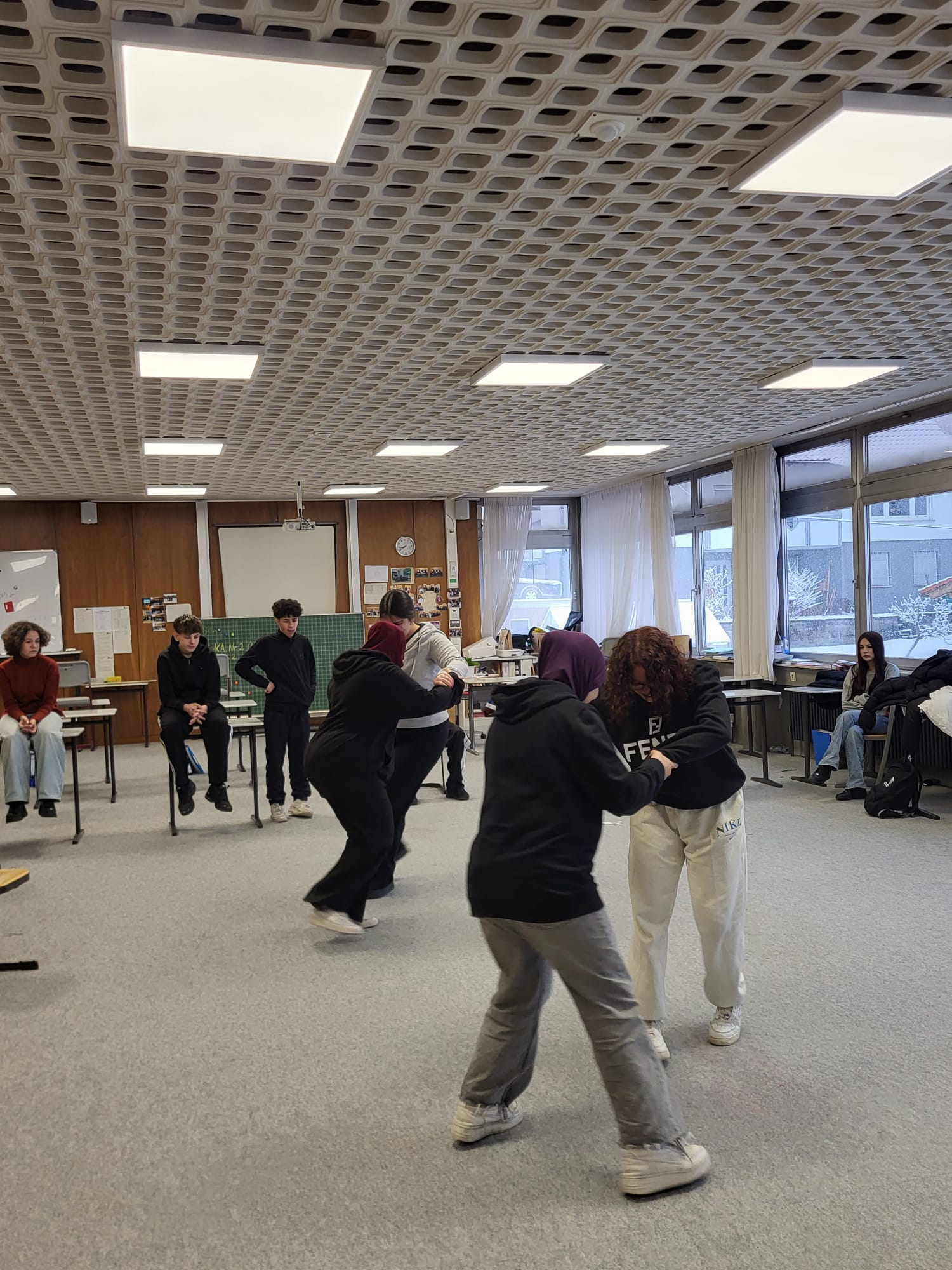 Das Projekt konnte erfolgreich im Klassenzimmer umgesetzt werden. Die Übungen wurden an die räumlichen Gegebenheiten angepasst und stets angeleitet und begleitet. Sicherheit, Freiwilligkeit und gegenseitiger Respekt standen jederzeit im Vordergrund. Niemand musste teilnehmen, persönliche Grenzen wurden akzeptiert und geschlechtergetrenntes Arbeiten war möglich.